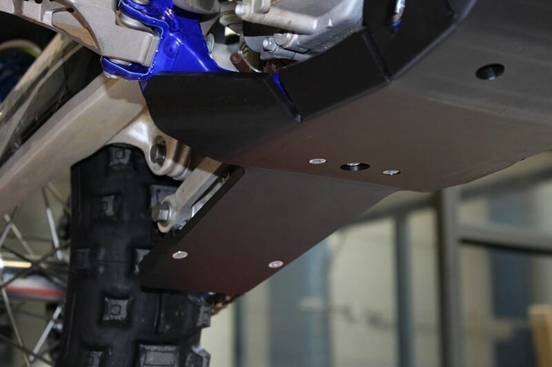 Extended skid plate up to protect the shock absorber linkage