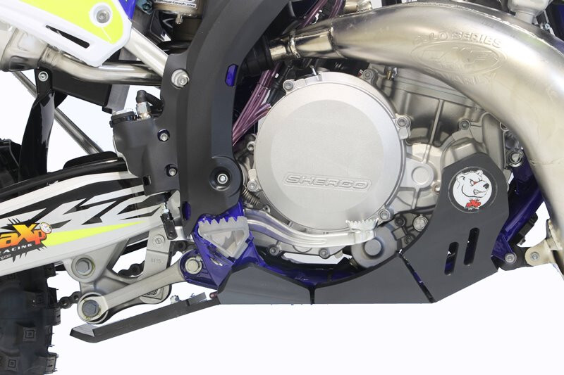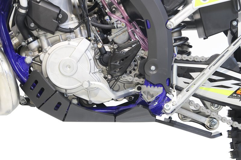 • El cubrecárter Xtrem AXP Racing tiene un diseño diferente al de la línea MX/SX. Este modelo integra una protección integral del chasis hasta debajo de las estriberas.